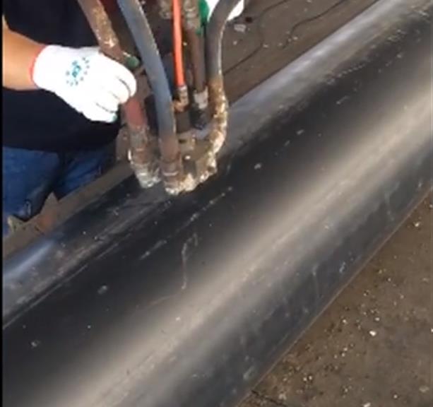 將符合鋼管直徑和保溫層厚度的法蘭封堵在管道兩端并將其鎖緊——調整發泡機的混合比為1:1.05——外護管中間正上方位置開澆注孔——將發泡機混合頭的澆注嘴插入澆注孔——澆注設定澆注時間(投料量/流量)——塑料堵塞封堵澆注孔——聚氨酯發泡熟化——拆卸卡頭——檢驗——修正投料量——成品。
