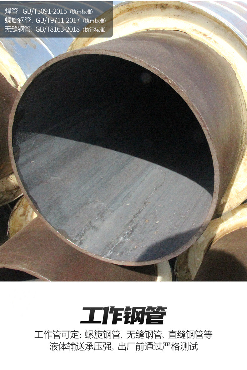 高溫預制直埋保溫管用途:這種保溫管可以被使用在一些化工產業的運輸工作中,使用的保溫層性能優越,可以有效保護管內熱量,阻止水分的滲透和損壞問題。